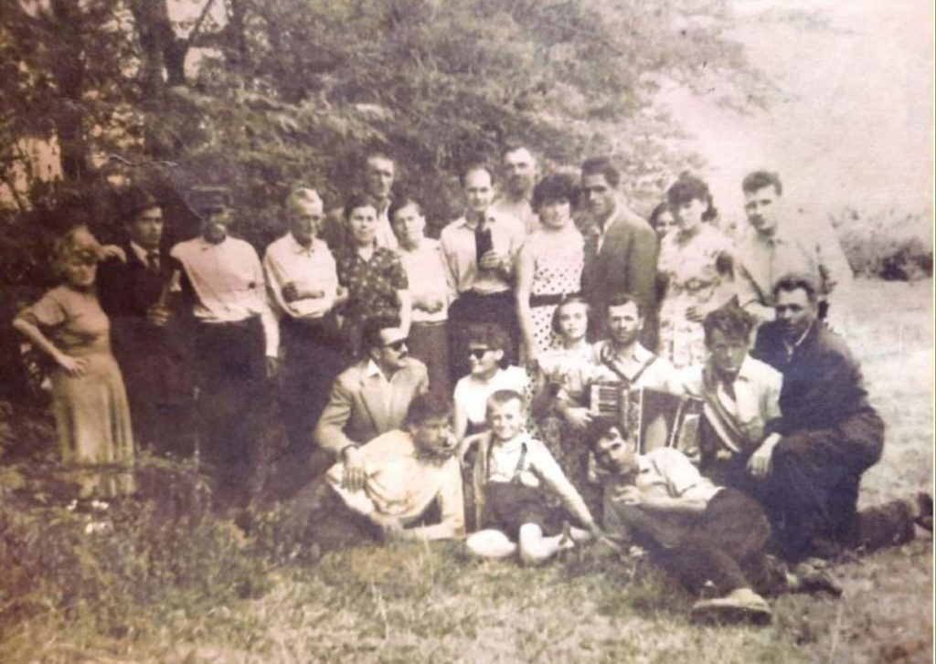 Доњи ред: са наочарима су Станко Поноћко и његова супруга Љубица (1939, Ново Лагово, дев. Королија, од оца Милоша/Кире), Љиља (1947, Сутјеска, од оца Јоцана) Стојсављевић, сеоски хармоникаш Јосим Огњан, онда Миодраг/Мате (1937, Ново Лагово код Прилепа, од оца Милоша/Кире) Королија и на крају у получучећем ставу Никола/Никуз Мељанац (1901, Отишић, од оца Јефте).