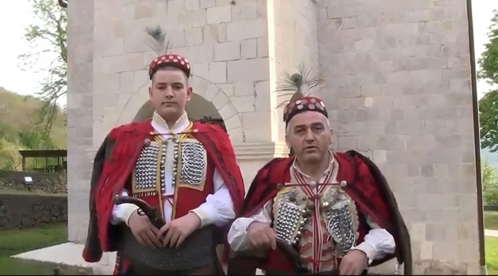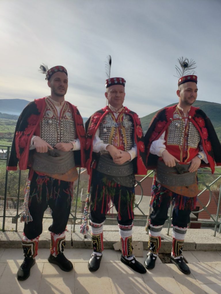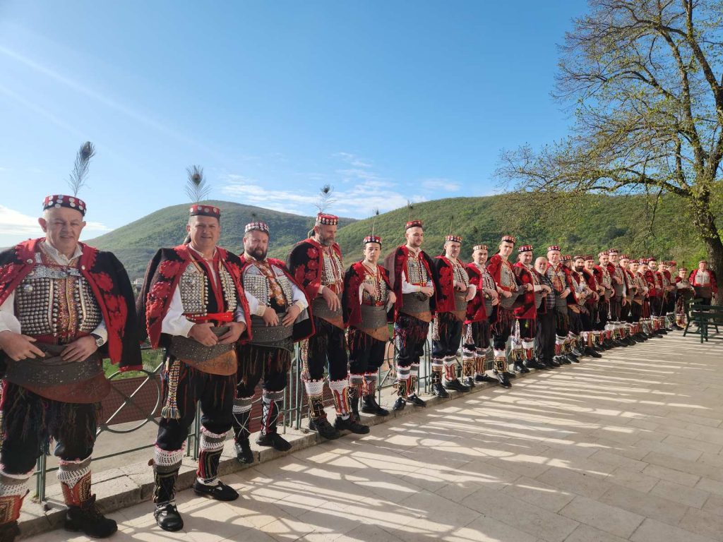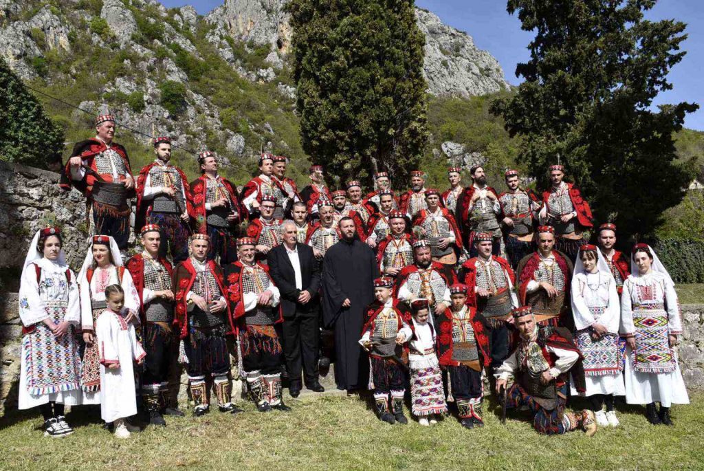 Ђуро Смиљанић и његов син Стефан су, поред ревносног учешћа у давању почасне страже, показали завидно умеће у игрању Врличког кола на платоу испред парохијског дома.