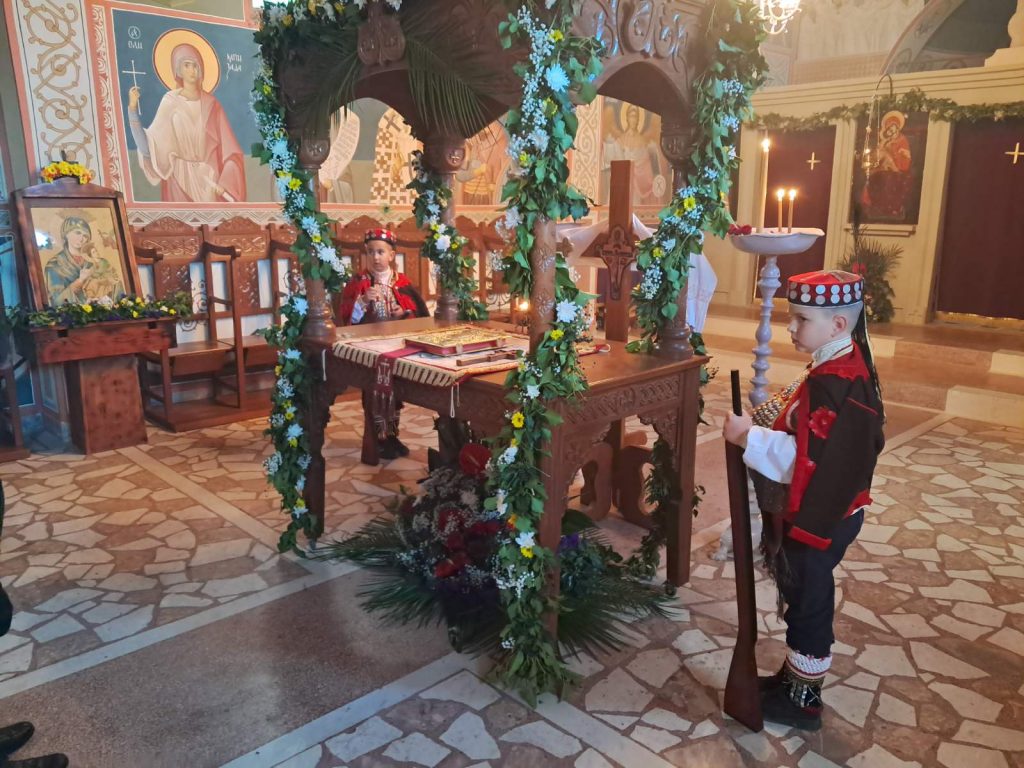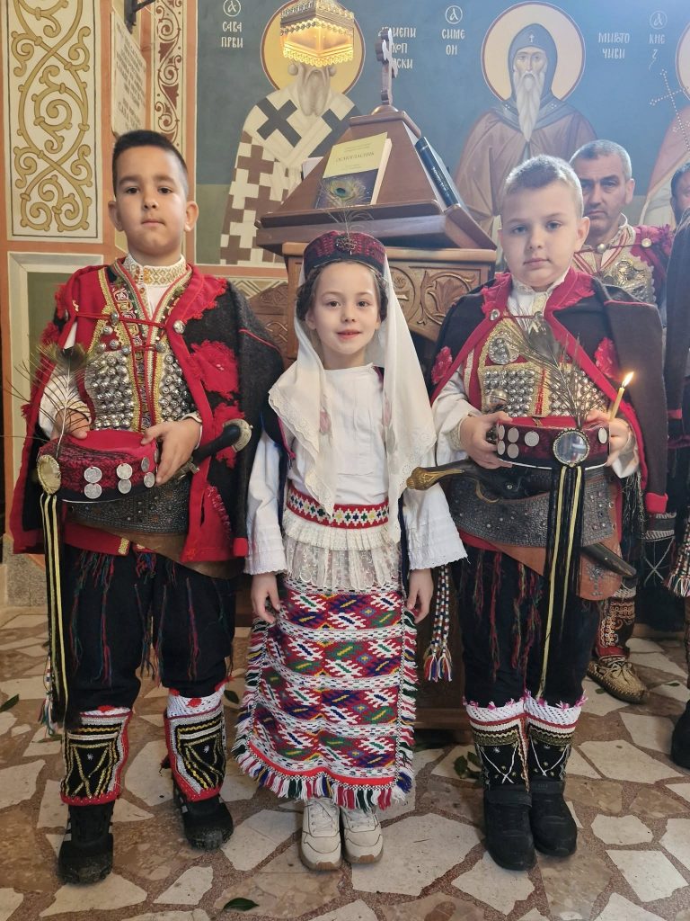 Из истог села поносни деда Мирко Гајић је довео унука Војина одевеног у народној ношњи, а његова кћерка Жељана довела је своју изузетно комуникативну, знатижељну кћерку – Ану Калањ – најмлађег учесника обученог у врличку ношњу. Оба малишана су равноправно са одраслима укључени у почасну стражу, а истакли су се тиме што су заједнички беспрекорно, уз благослов свештеника Лазара Пријића, читали молитву Оченаш.