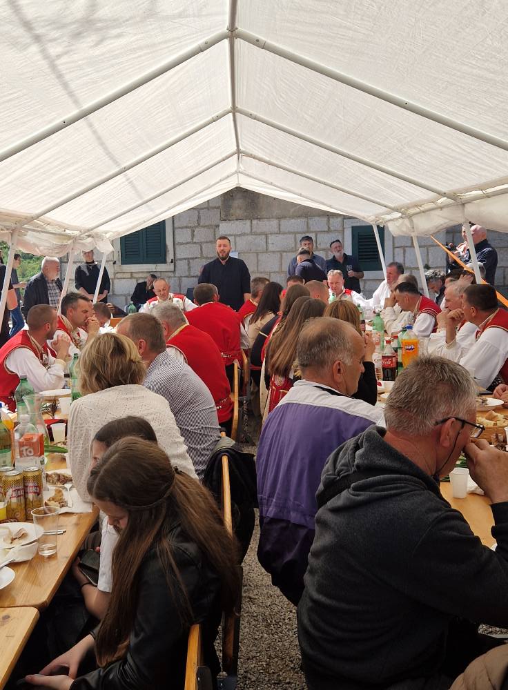 Под препуним шатором, по обичају прво су конзумирана јаја офарбана у црвену боју која симболишу радост и васкрсење, а потом су се на менију нашли врлички уштипци, далматинска пршута, качкаваљ, јагњеће печење и капула, као и колачи.